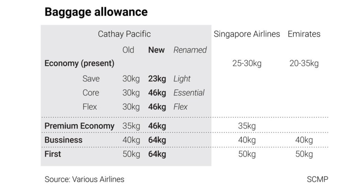Hong Kongs Cathay Pacific To Cut Baggage Allowance For Cheapest Fares While Boosting It Substantially For Others South China Morning Post